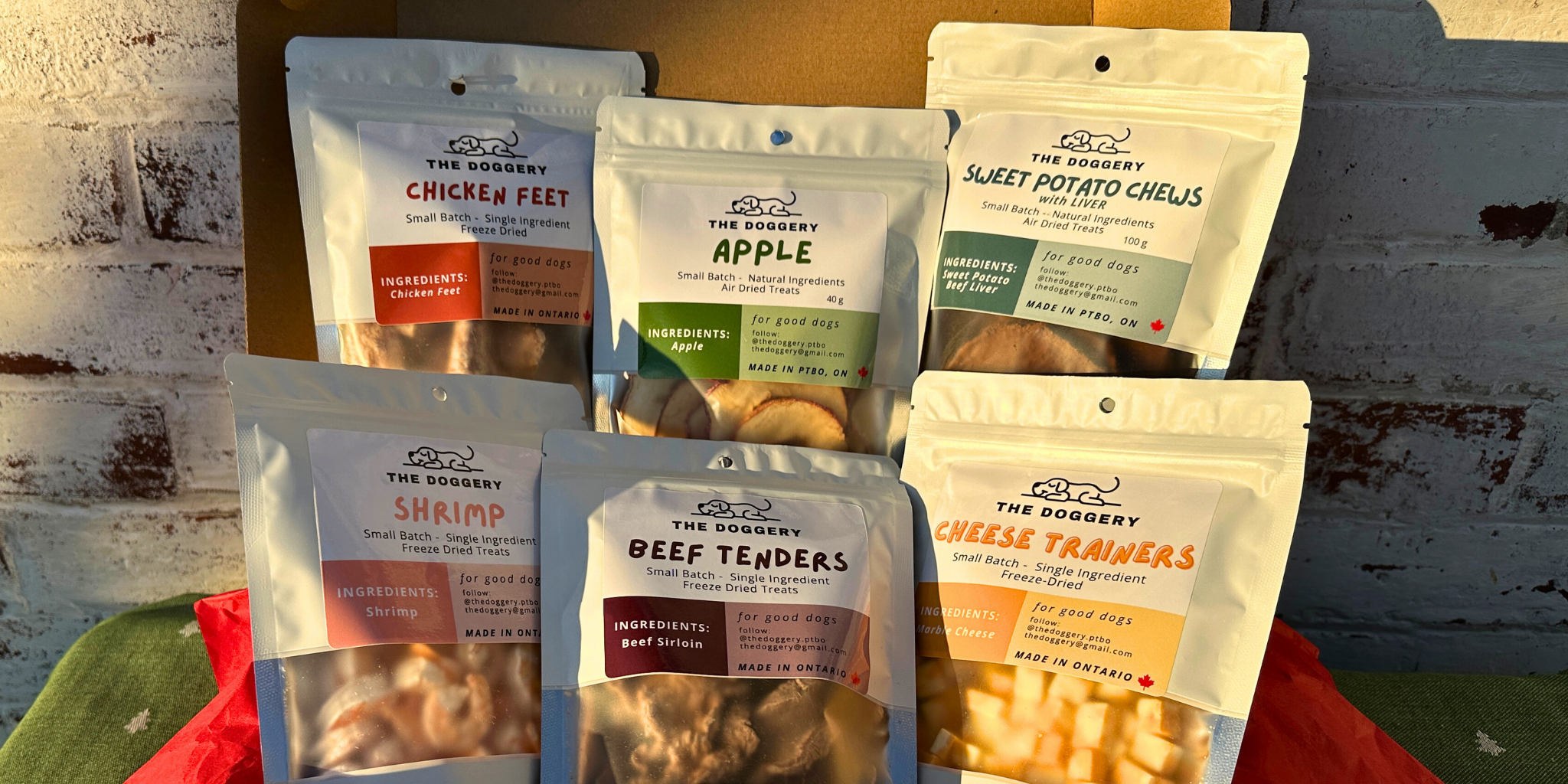 Our treats are made in Peterborough, Ontario. Our high quality ingredients are locally sourced from trusted suppliers in our community.